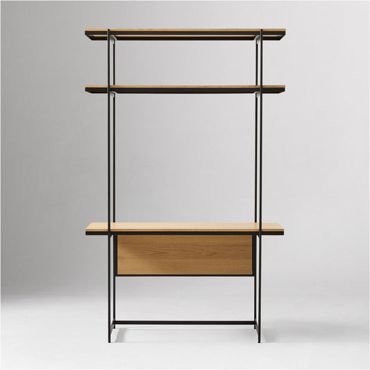 Industrial Storage Modular Desk W/ Open Shelves & Bookcase